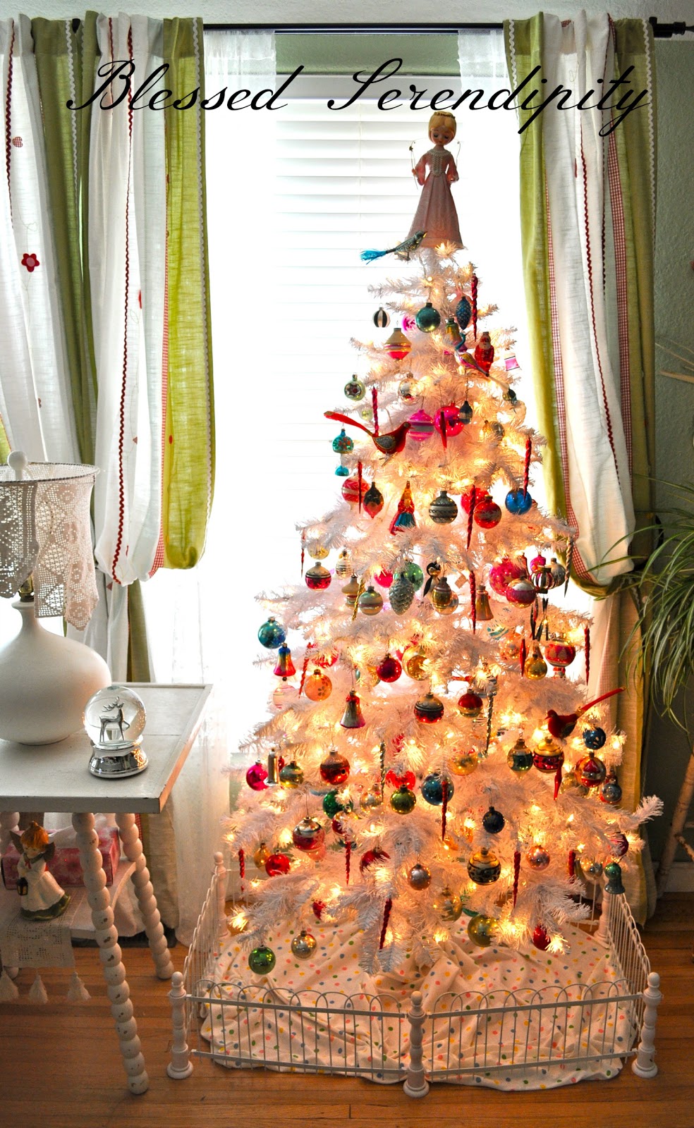 Blessed Serendipity shared her Shiny Brite tree- so darling. Love love love old Shiny Brites!